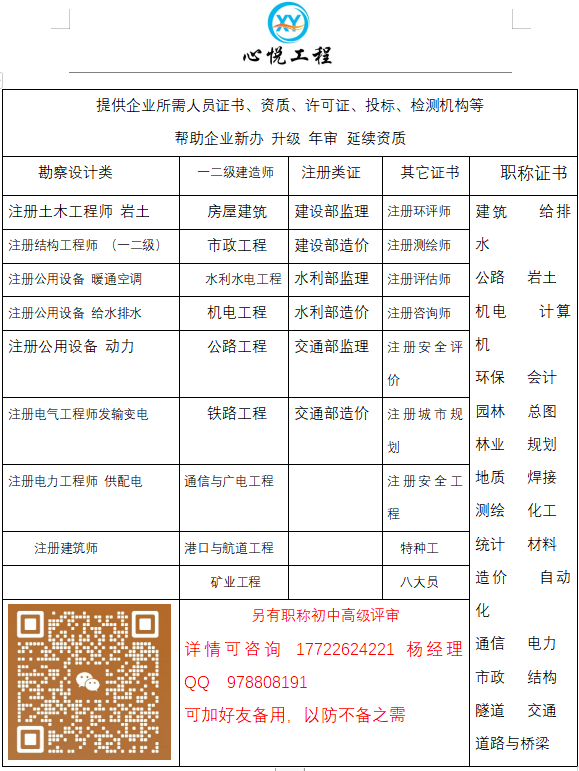 建筑,地災,園林,林業,水保,安全,通訊,環保,暖通,結構,環境,市政,公路工程師等找單位! 助單位升級維護資質,資料齊全,可馬上辦成 證書均由人力資源和社會保障局或當地人事局頒發 可網查, ...