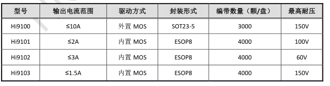 Hi910X 是一系列外圍電路簡潔的寬輸入電壓降壓BUCK 恒壓恒流驅動器,適用于 8-150V 輸入電壓范圍的 DCDC 降壓應用。Hi910X 采用我司專利算法,實現高精度的降壓恒壓恒流。輸出電壓通過 FB 管腳設置,輸出電流通過 CS ...