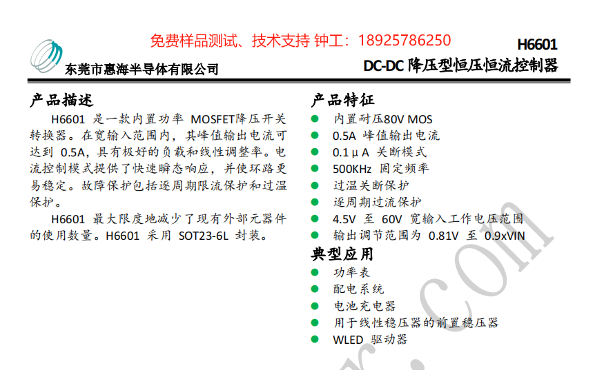 [color=rgba(0, 0, 0, 0.9)]為了滿足日益增長的電源管理需求,惠海半導體特別推出了一款實地架構電源管理芯片H6602,能夠解決靜態電流大、外圍復雜、紋波大、輸出電壓不穩、動態負載差等痛點。 [color=rgba(0 ...