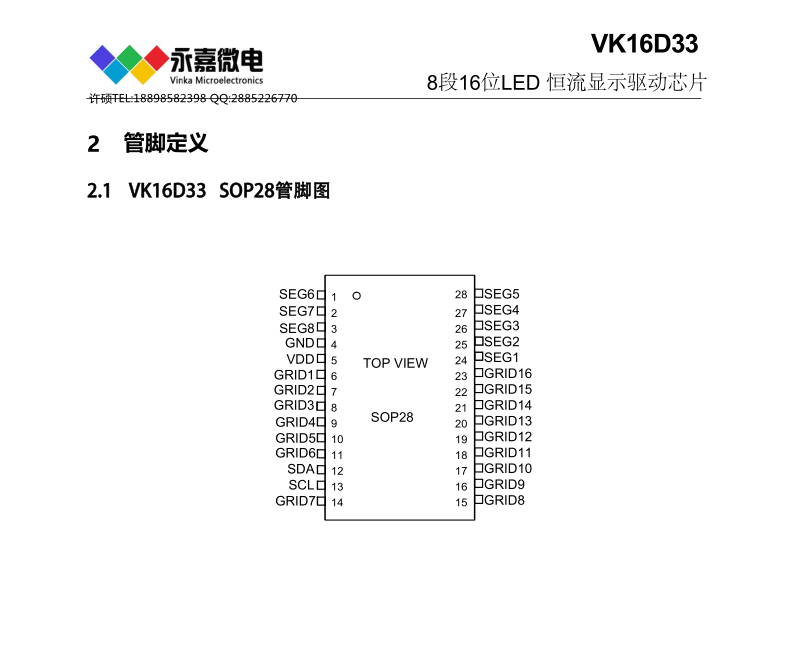 產品品牌:永嘉微電/VINKA產品型號:VK16D33封裝形式:SOP28 概述VK16D33是一種恒流數碼管或點陣LED驅動控制專用芯片,內部集成有數據鎖存器、LED恒流驅動模塊等電路。可以通過寄存器配置,調節掃描的位數,從而獲得 ...