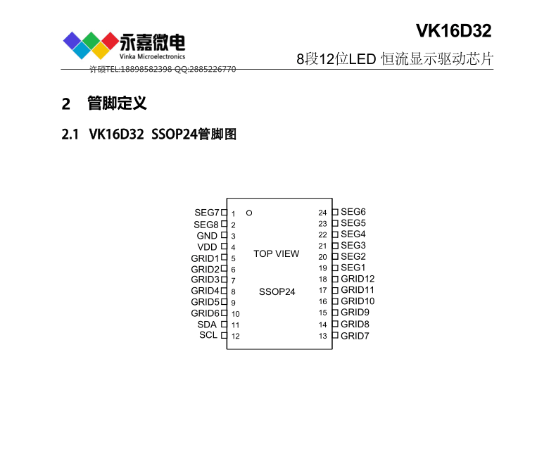 產品品牌:永嘉微電/VINKA產品型號:VK16D32封裝形式:SSOP24L 概述VK16D32是一種恒流數碼管或點陣LED驅動控制專用芯片,內部集成有數據鎖存器、LED恒流驅動模塊等電路。可以通過寄存器配置,調節掃描的位數,從而獲 ...
