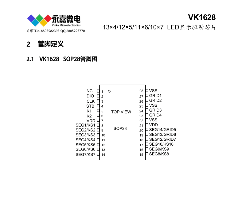 性價比高,穩定性好,VK1628超抗干擾數顯芯片