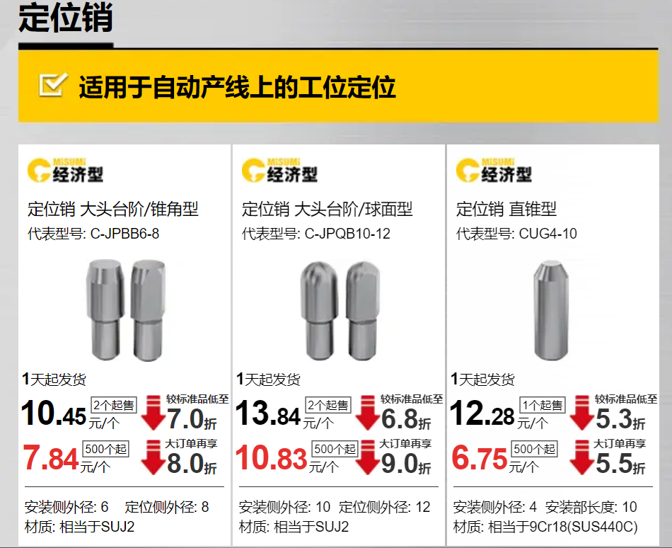 在機械制造和裝配領域,定位銷作為確保零件精準定位和穩定連接的關鍵元件,其選擇和使用對于提升產品質量和生產效率至關重要。米思米經濟型定位銷憑借其多樣化的類型、精準的定位、穩定可靠的性能以及經濟實惠的價格 ...