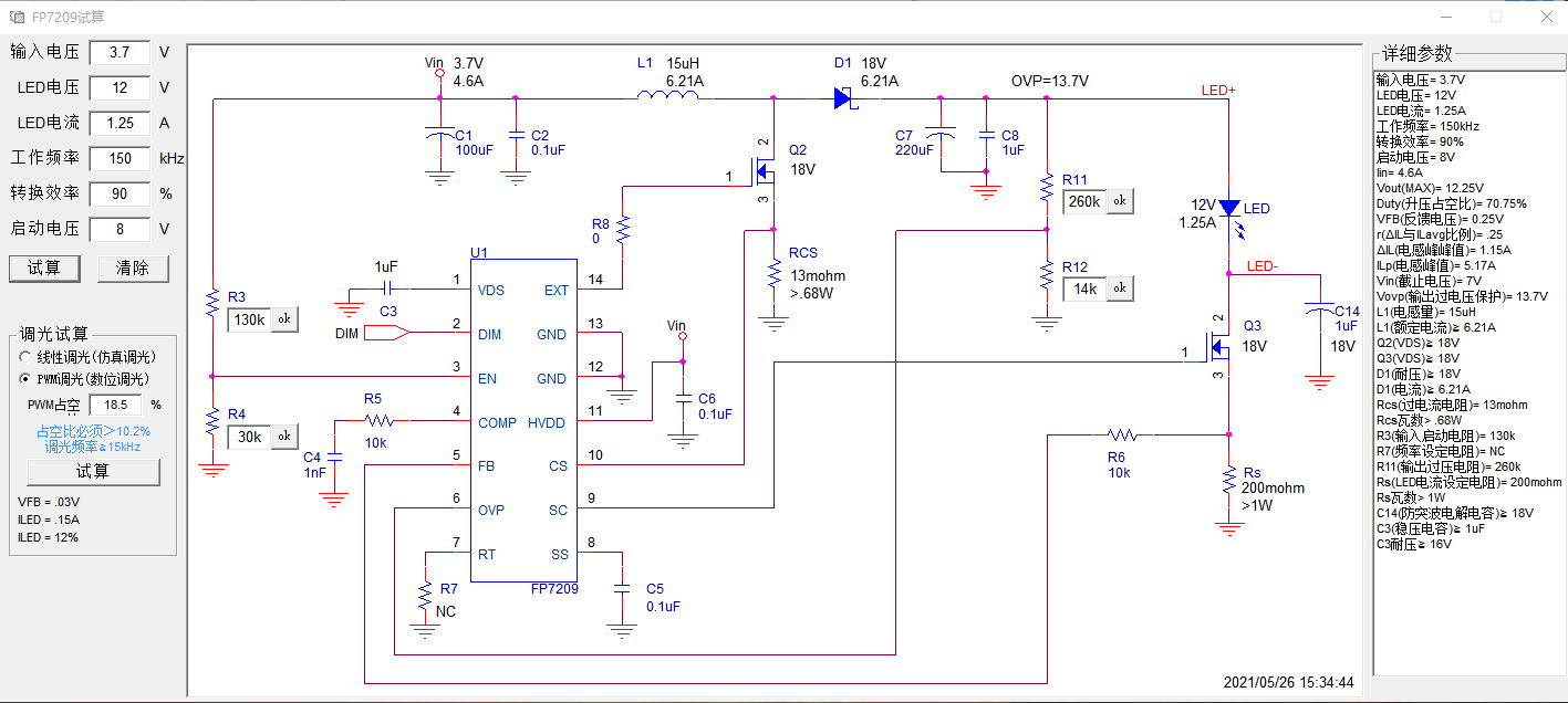 方案基于FP7209設(shè)計 FP7209 是一顆升壓恒流LED 驅(qū)動IC,控制外部開關(guān)NMOS,輸入低啟動電壓2.8V,VFB反饋電壓0.25V,反饋電壓低,取樣電阻功率損耗也降低,整體轉(zhuǎn)換效率提升。軟啟動時間透過外部電容調(diào)整,LED開 ...
