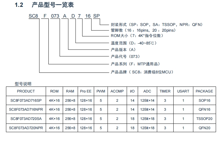 中微半導體一級代理SC8F073是一款MTP芯片,具備內置16MHz RC振蕩器和12位ADC,提供多達18個GPIO。該產品的工作電壓范圍為1.8V至5.5V,支持多種封裝類型,包括SOP16、QFN16和QFN20。它內置了多種功能,如2個8位定時器 ...