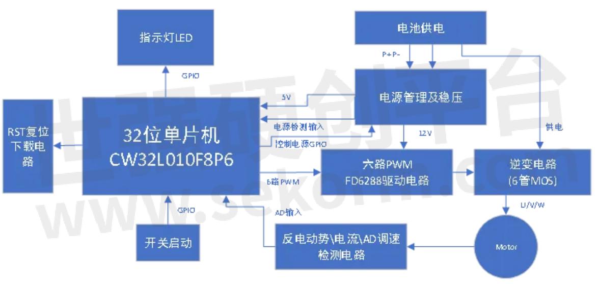 正文摘要:武漢芯源的CW32L010F8P6作為主控實(shí)現(xiàn)低成本電動(dòng)工具方案,通過PWM方波控制算法進(jìn)行電機(jī)轉(zhuǎn)速控制,內(nèi)部高精度AD轉(zhuǎn)換實(shí)現(xiàn)電機(jī)電壓、反電動(dòng)勢(shì)、電流等信號(hào)的采樣,并實(shí)時(shí)進(jìn)行故障停機(jī)保護(hù)等功能。 1.CW32L010特點(diǎn)內(nèi)核 ... |