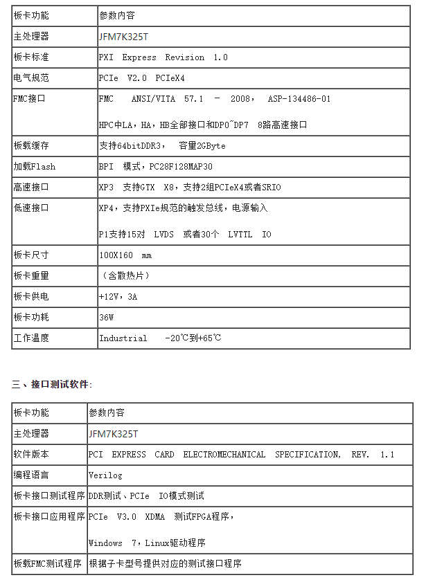 一、板卡概述 本板卡基于 FPGAJFM7K325T 芯片,pin_to_pin兼容FPGAXC7K410T-2FFG900 ,支持PCIeX8、64bit DDR3容量2GByte,HPC的FMC連接器,板卡支持PXIE標準協議,其中XJ3標準高速 ...
