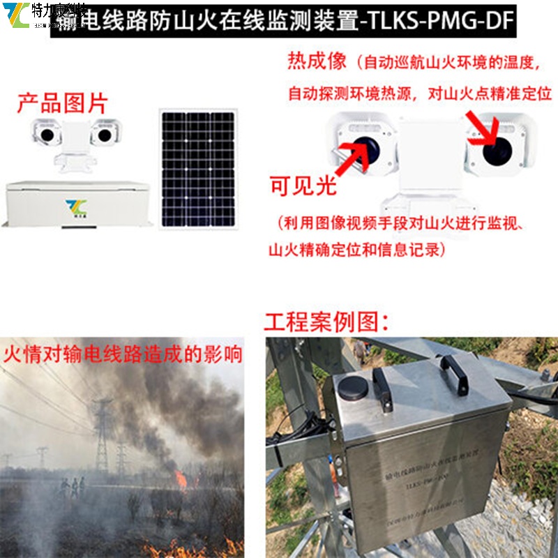輸電線路防山火在線監(jiān)測裝置TLKS-PMG-DF一、產(chǎn)品概述:山火,是威脅輸電線路安全運(yùn)行的重大隱患之一。一旦發(fā)生山火,極易引發(fā)線路跳閘、斷線等事故,造成大面積停電,給人民生命財(cái)產(chǎn)安全帶來嚴(yán)重威脅。輸電線路防山 ...