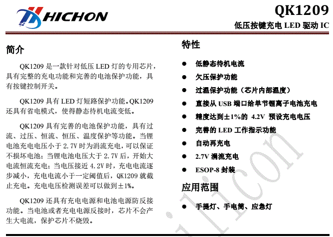 QK1209是LED低壓照明專用芯片,主要應用于:手提燈、手 ...