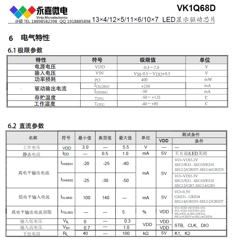產品型號:VK1Q68D產品品牌:永嘉微電/VINKA封裝形式:QFN24L永嘉原廠,工程服務,技術支持! 概述VK1Q68D是一種帶鍵盤掃描接口的數碼管或點陣LED驅動控制專用芯片。內部集成有3線串行接口、數據鎖存器、LED 驅動 ...