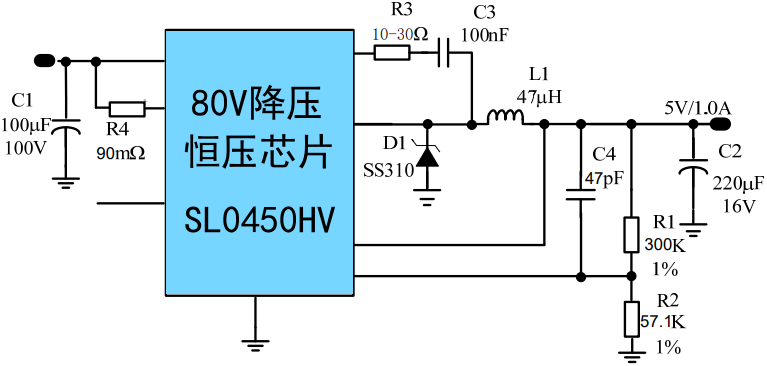 在電源管理領域,高效、穩定的降壓轉換器是工業、汽車電子及消費類設備的核心需求。SL0450HV作為一款單片集成的開關型降壓轉換器,憑借其4.5V-80V超寬輸入電壓范圍、1.2A持續輸出電流及高達90.5%的轉換效率,成為電 ...
