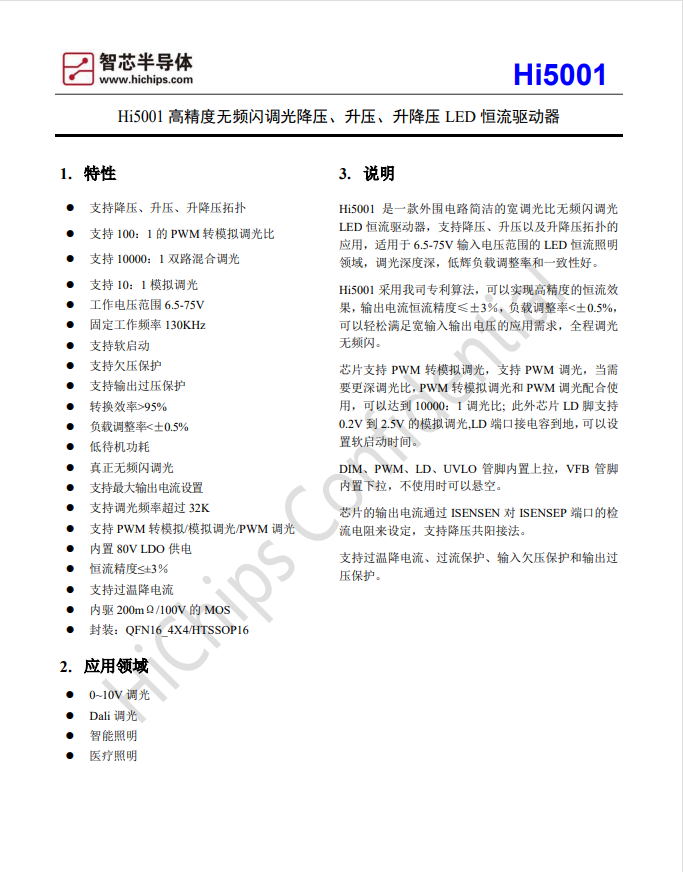 Hi5001Q/Hi5001H作為一款高集成度 LED 恒流驅(qū)動(dòng)器,憑借寬拓?fù)溥m配、深調(diào)光比及簡化設(shè)計(jì)特性,為 6.5-75V 輸入范圍的照明應(yīng)用提供高效解決方案。 一、寬拓?fù)溥m配與寬壓輸入,覆蓋多場景應(yīng)用 Hi5001Q/ ...