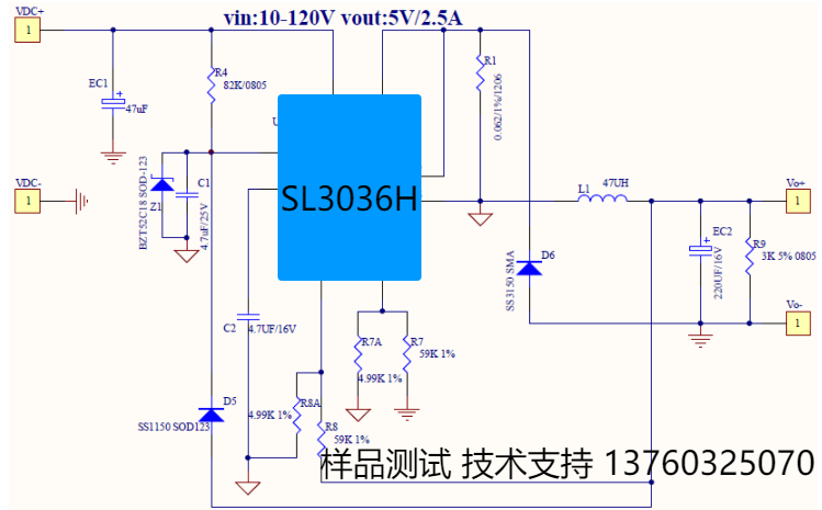 SL3036H寬輸入電壓降壓型DC-DC電源芯片深度解析 一、核心特性與性能優勢 SL3036H是一款集成150V/3A功率MOS的高性能降壓型DC-DC轉換器,具備以下技術亮點: 寬輸入電壓范圍:支持8V至120 ...