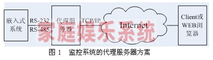 摘要:基于ARM嵌入式的數(shù)字化遠(yuǎn)程監(jiān)控是基于現(xiàn)代通信技術(shù)的一種新應(yīng)用。本文首先介紹了數(shù)字視頻監(jiān)控系統(tǒng)的一些基本知識;然后介紹了實現(xiàn)數(shù)字監(jiān)控系統(tǒng)的三種可選方案,并對比這三種方案;再重點介紹了本設(shè)計中數(shù)字監(jiān)控系統(tǒng)的硬件設(shè)計和軟件設(shè)計;最后對該系統(tǒng)做出了總結(jié)。 引言 圖 像與視頻監(jiān)控系統(tǒng)是應(yīng)用計算機與通信技術(shù)實現(xiàn)對目標(biāo)地區(qū)信息監(jiān)控的系統(tǒng),常應(yīng)用于交通、能源、公安、電信、軍事等部門。隨著圖像與視頻監(jiān)控系統(tǒng)的應(yīng)用領(lǐng)域 不斷擴大,遠(yuǎn)程圖像與視頻監(jiān)控系統(tǒng)應(yīng)運而生,它滿足了遠(yuǎn)距離監(jiān)控的要求。數(shù)字視頻監(jiān)控系統(tǒng)是以計算機或嵌入式系統(tǒng)為中心、視頻處理技術(shù)為基礎(chǔ),是符合圖像 數(shù)據(jù)壓縮的國際標(biāo)準(zhǔn)。綜合利用圖像傳感器、計算機網(wǎng)絡(luò)、自動控制和人工智能等技術(shù)的一種新型監(jiān)控系統(tǒng)。由于數(shù)字視頻監(jiān)控系統(tǒng)對視頻圖像進(jìn)行了數(shù)字化,所以 與傳統(tǒng)的模擬監(jiān)控系統(tǒng)相比,數(shù)字監(jiān)控具有許多優(yōu)點。數(shù)字化的視頻系統(tǒng)可以充分利用計算機的快速處理能力,對其進(jìn)行壓縮、分析、存儲和顯示。數(shù)字化視頻處理 技術(shù)提高了圖像的質(zhì)量與監(jiān)控效率,使系統(tǒng)易于管理和維護(hù)。整個系統(tǒng)是模塊化結(jié)構(gòu),體積小,易于安裝、使用和維護(hù)。正是由于數(shù)字視頻監(jiān)控技術(shù)具有傳統(tǒng)模擬監(jiān) 控技術(shù)無法比擬的優(yōu)點,而且符合當(dāng)前信息社會中數(shù)字化、網(wǎng)絡(luò)化和智能化的發(fā)展趨勢,所以數(shù)字視頻監(jiān)控技術(shù)正在逐步取代模擬監(jiān)控技術(shù),廣泛應(yīng)用于各行各業(yè)。 嵌入式系統(tǒng)以體積小、實時性強、性價比高、穩(wěn)定性好等特點在社會的各個領(lǐng)域中得到了廣泛應(yīng)用。基于ARM嵌入式的數(shù)字化遠(yuǎn)程監(jiān)控是基于現(xiàn)代通信技術(shù)的一種 新應(yīng)用。本設(shè)計是一種嵌入式系統(tǒng),以 ARM硬件平臺為核心實現(xiàn)了對現(xiàn)場的實時監(jiān)控,并通過無線網(wǎng)絡(luò)把視頻圖像傳輸?shù)街鳈C端,以實現(xiàn)分析、存儲和顯示等功能,與傳統(tǒng)的模擬監(jiān)控系統(tǒng)相比:它的組 網(wǎng)成本大大降低,系統(tǒng)體積重量大大減小,運行維護(hù)更容易。 1 監(jiān)控系統(tǒng)方案介紹 遠(yuǎn)程監(jiān)控系統(tǒng)的網(wǎng)絡(luò)結(jié)構(gòu)設(shè)計直接影響到系統(tǒng)的性能,目前監(jiān)控系統(tǒng)網(wǎng)絡(luò)的實現(xiàn)大致有三種方案。分別介紹如下: (1)采用代理服務(wù)器的方法 代 理服務(wù)器一般由PC來充當(dāng),一方面運行TCP/IP協(xié)議實現(xiàn)Internet接入功能,另一方面通過簡單總線結(jié)構(gòu)(RS232、RS485等)與嵌入式系 統(tǒng)相連接。如圖1所以。系統(tǒng)中只需要有一部分與代理服務(wù)器通信的代碼即可。其優(yōu)點是可以很方便地解決設(shè)備上網(wǎng)的問題,開發(fā)難度低;缺點是接入成本比較高, 不利于大規(guī)模推廣。該方案比較適合大型或較昂貴工業(yè)設(shè)備的上網(wǎng)需求,不適合用于低價格的設(shè)備。